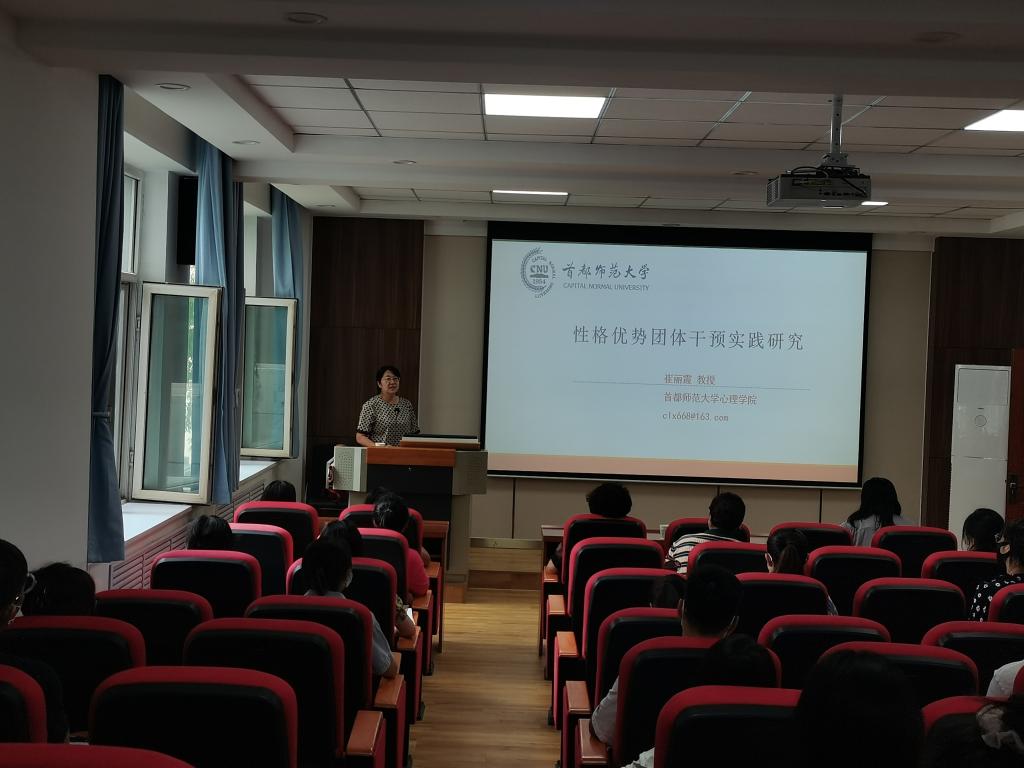 崔丽霞教授做题为“性格优势团体干预实践研究”的讲座,从性格优势干预的概念入手,详细介绍了如何帮助个体识别、发展和利用优势。基于积极心理干预理论,崔丽霞教授着重介绍了自己及团队设计的针对中国青少年焦虑预防的性格优势团体辅导方案,该方案已在全国各中学进行了随机对照实验,多时段追踪数据结果也表明其效果显著且持续。崔丽霞教授勉励各位同学要接纳自己,扬长避短,找到并发展自己的性格优势,不断提升自己的学术修养。