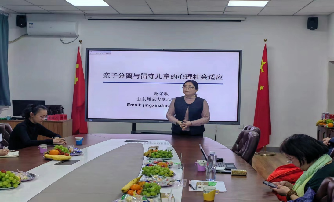 教育部基础教育教学质量评价专委会委员、中国心理学会教学工作委员会委员、山东省本科教育教学指导委员会秘书长、山东省泰山学者青年专家、山东师范大学beat365正版唯一官网必一党委书记赵景欣教授作题为《亲子分离与留守儿童的心理社会适应》的学术报告,赵景欣教授从留守儿童的群体特征和家庭结构引入,阐述了亲子分离与留守儿童心理社会适应的宏大叙事,并重点介绍了团队关于留守儿童孤独感与偏差行为的发展轨迹研究。