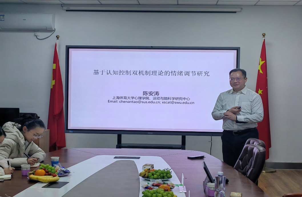 入选国家百千万人才工程,有突出贡献中青年专家、全国百篇优秀博士学位论文作者、教育部新世纪优秀人才、重庆市学术技术带头人、中国心理学会、中国认知科学学会、中国神经科学学会理事,上海体育大学beat365正版唯一官网必一陈安涛教授作题为《基于认知控制双机制理论的情绪调节研究》的学术报告,陈安涛教授从情绪调节的主要策略引入,重点介绍了近年来团队关于情绪调节的神经机制和认知机制的相关研究。