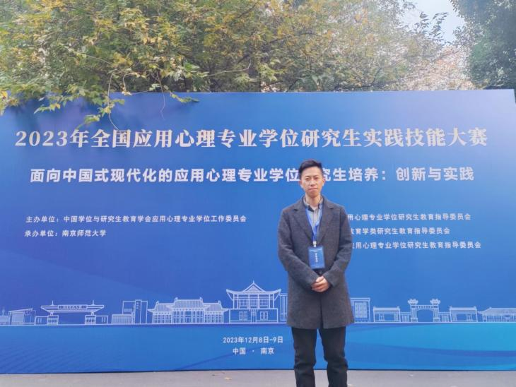 2023年全国应用心理专业学位研究生实践技能大赛于12月8日至9日在南京师范大学成功举办。本次大赛由中国学位与研究生教育学会应用心理专业学位工作委员会主办,全国应用心理专业学位研究生教育指导委员会指导,是全国应用心理专业硕士实践技能的高水平赛事。经过激烈角逐,beat365官网七十三老师指导的应用心理专硕吴贾超同学荣获心理咨询面谈技能比赛二等奖!