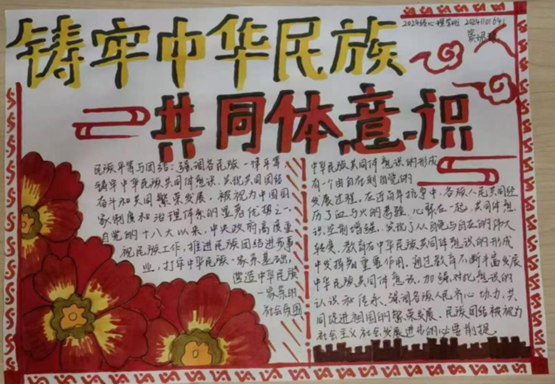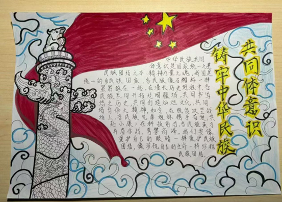 一幅幅手抄报,版面设计美观、形式灵活多样、内容精彩纷呈。同学们用画笔把对“铸牢中华民族共同体意识”的理解跃然展现于纸上,民族团结的精神被浓墨重彩勾勒出了模样。