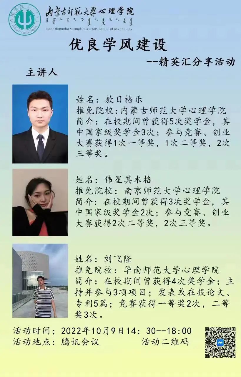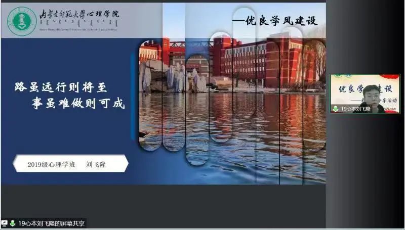 勤学如春起之苗,不见其增,日有所长:辍学如磨刀之石,不见其损,日有所亏。没有知识的滋养,心灵易贫瘠,灵魂易空虚。对待学习,要博学之,审问之,慎思之,明辨之,笃行之。为进一步加强beat365官网优良学风建设,beat365正版唯一官网必一于10月9日下午三点在线上举办优良学风建设-精英汇分享活动。本次会议由团总支书记刘敏主持,敖日格乐、刘飞隆、伟星其木格进行分享。
