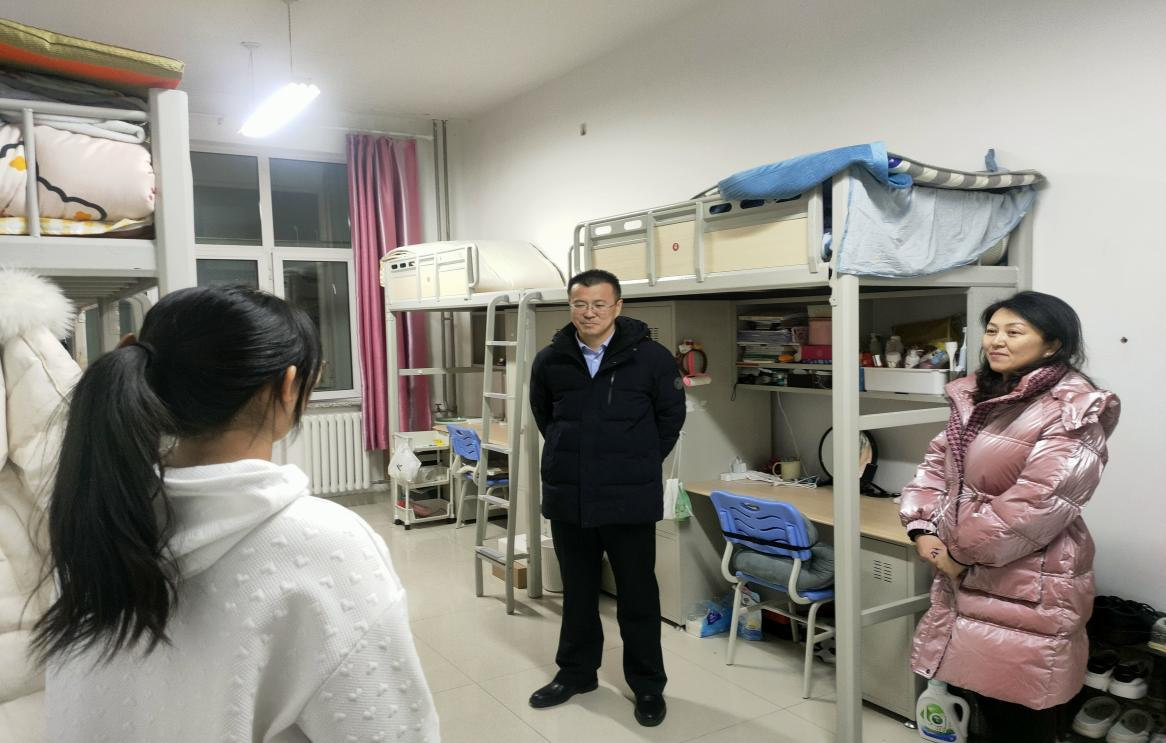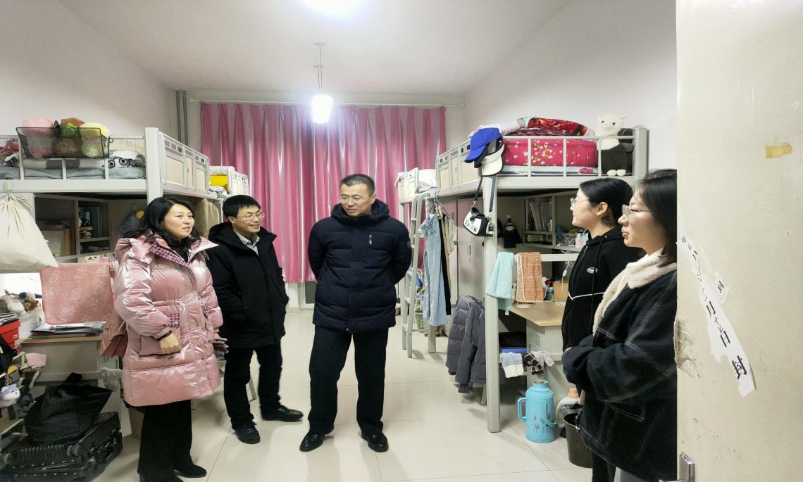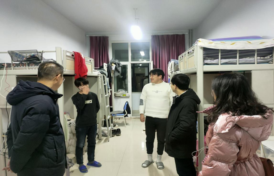 为了更好地关心假期留校学生,及时了解学生的思想状态和心理诉求,1月14日晚,beat365正版唯一官网必一党委书记侯友、党委副书记副院长张春林、副院长金童林、学就办主任张金钟一行深入宿舍楼走访看望假期留校同学,为他们送去了温暖和关怀。