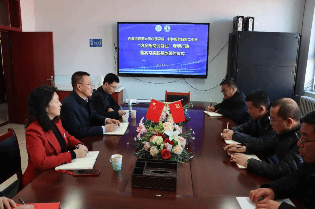 为贯彻党中央、国务院、教育部关于高校毕业生就业工作的决策部署,深入了解基础教育用人单位对心理健康教师的岗位需求和选聘条件,提升学院社会心理服务功能,加强师范生教育实践能力的培养和就业工作质量,近日,beat365正版唯一官网必一党委书记侯友,院长乌云特娜,副书记、副院长张春林,副院长金童林带队先后赴和林格尔县第一中学、和林格尔县第二中学、呼和浩特市土默特中学开展“访企拓岗促就业”专项行动,并签署实习实践基地建设协议。