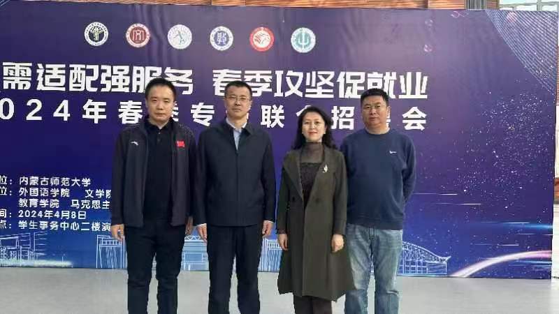 为深入贯彻落实党中央、国务院“稳就业”“保就业”决策部署,按照教育部、教育厅“春季攻坚促就业”工作要求,4月8日,“供需适配强服务 春季攻坚促就业”2024年春季专场联合招聘会在盛乐校区学生事务中心举行。此次招聘会由招生就业处主办,beat365正版唯一官网必一、文学院、外国语学院、教育学院、数学科学学院6个二级学院承办。党委委员、副校长韩巍、招生就业处处长许琳及相关负责人莅临招聘会现场指导工作,学院党委书记侯友、副书记副院长张春林、学就办主任张金钟深入招聘现场,详细了解用人单位的岗位信息、人才需求、工作前景等,并与毕业生亲切交谈,了解求职情况。