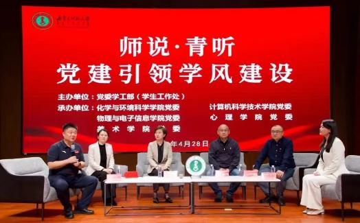 4月28日,由党委学工部(学生工作处)主办,化学与环境科学学院党委、计算机科学技术学院党委、物理与电子信息学院党委、beat365正版唯一官网必一党委、美术学院党委承办的以“师说·青听 党建引领学风建设”为主题的圆桌沙龙在盛乐校区图书馆二楼报告厅举行。beat365正版唯一官网必一党委副书记、副院长张春林,美术学院党委副书记、副院长云双庆,化学与环境科学学院党委副书记、副院长范磊,计算机科学技术学院副院长柳林,物理与电子信息学院团总支书记宝力尔分别作了交流发言。计算机科学技术学院团总支书记赵巍伟主持活动。