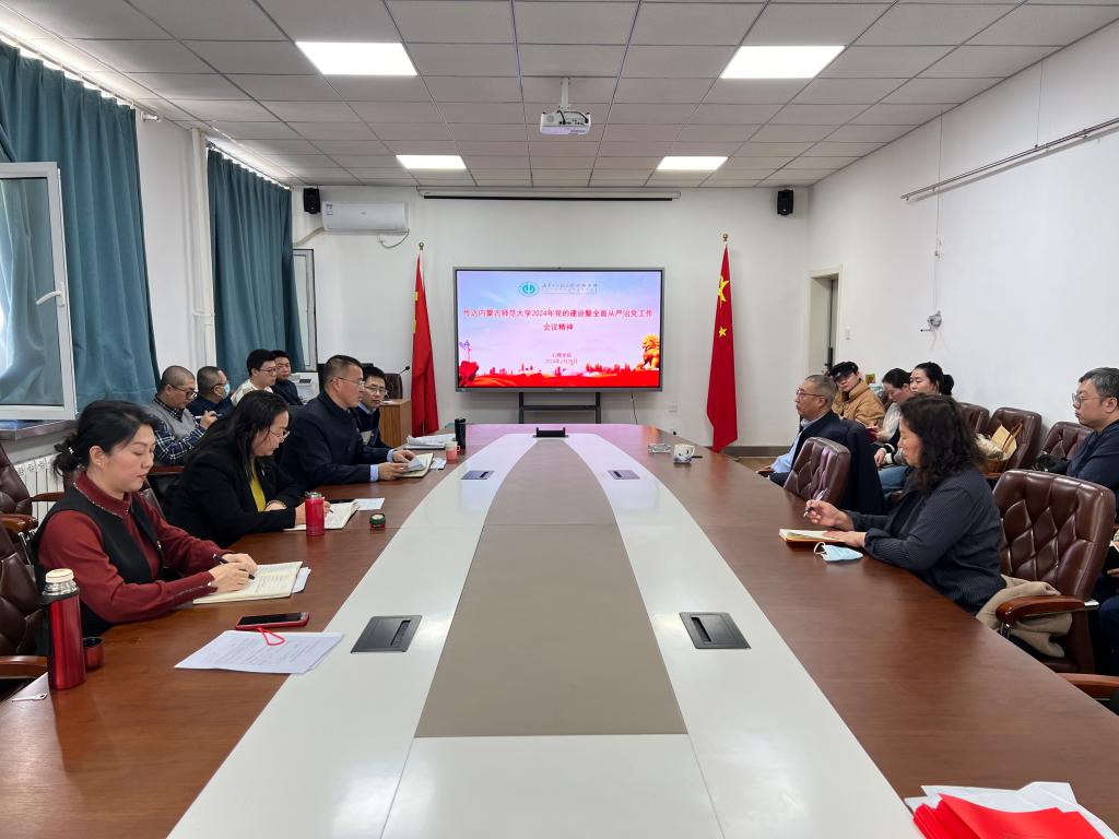 为认真贯彻落实学校2024年党的建设暨全面从严治党工作会议精神,引导全体教职工切实将思想、行动统一到校党委决策部署上来,推动党的建设、全面从严治党各项工作部署落细落地,为学校“双一流”建设营造风清气正的政治生态。2月29日下午,beat365正版唯一官网必一召开会议学习传达学校2024年党的建设暨全面从严治党工作会议精神。学院领导侯友、乌云特娜、张春林、金童林及全体教师参加会议。会议由学院党委书记侯友主持。