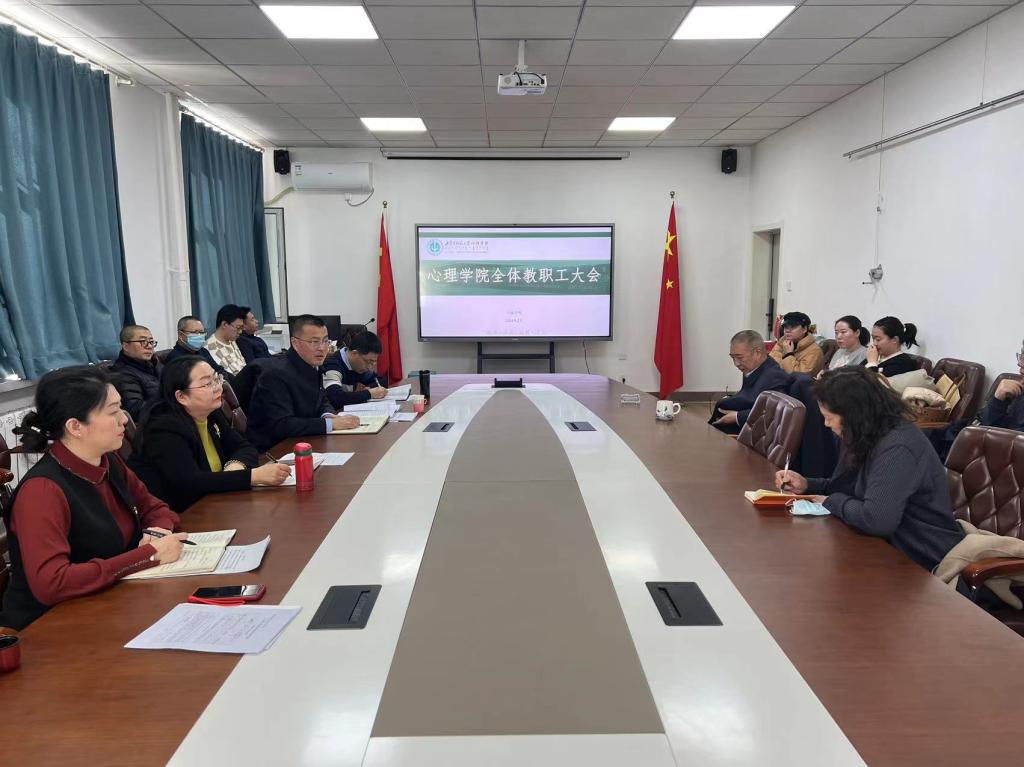 为谋新篇开新局,确保新学期开学各项工作平稳有序进行,2月29日下午,beat365官网在赛罕校区文史楼217会议室召开beat365正版唯一官网必一全体教职工大会。会议就新学期党建、师德师风、人才引进、师范类专业认证、本科教育教学审核评估及研究生教育与科学研究等各项重点工作进行了安排部署。