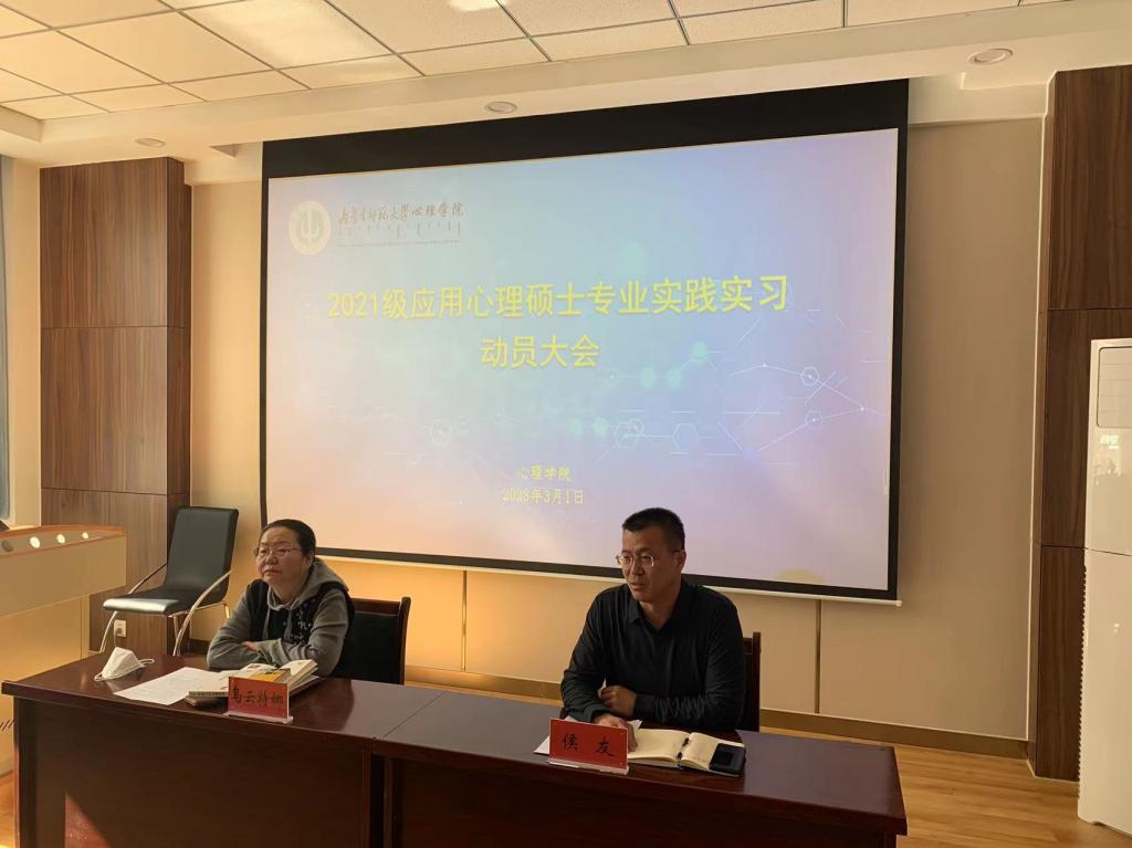3月1日上午,beat365官网召开2021级应用心理专业硕士研究生实习实践动员会,院长乌云特娜教授、副院长侯友副教授,部分指导教师、班主任老师及2021级应用心理专业全体研究生参加动员会。