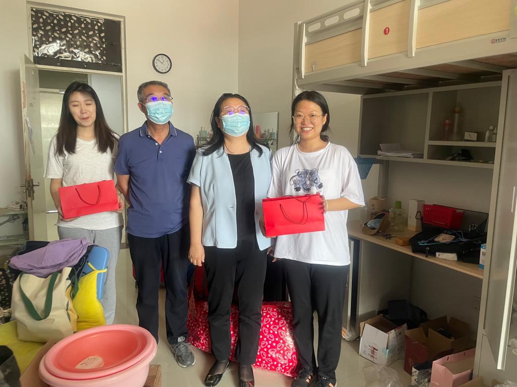 6月19日上午,学院党委书记七十三,院长乌云特娜,党委副书记副院长张晓阳、副院长侯友,学就办、团总支负责人、班主任来到学生公寓,慰问beat365官网返校毕业生。