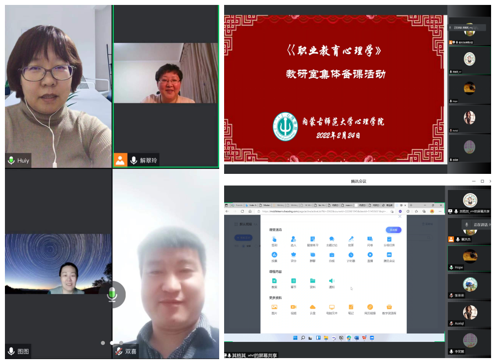 为适应新冠肺炎防控形势下的线上教学,beat365正版唯一官网必一各公共课教研室分别于2月22日与2月24日组织开展了《中学教育心理学》《职业教育心理学》线上集体备课活动,本学期授课教师均在线参加。