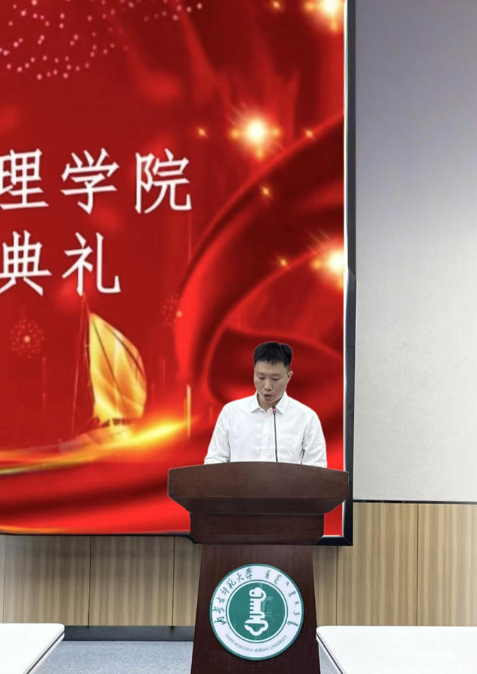 教师代表格根图雅以幽默风趣的方式围绕用心感受心理学的文化传承分享了自己对于学习和生活的见解,希望同学们用心感受百年心理学的文脉传承、汲取激励心理学人前行的力量,彰显内师人的家国情怀。她鼓励大家要独立思考,闯学术之路;自信专注,辟科研新径;笃行致远,担时代重任。