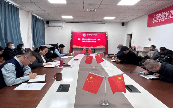 为切实筑牢2026年硕士研究生招生考试工作基础,深入贯彻教育部关于将研招工作纳入本单位党委全面从严治党主体责任清单的部署要求,确保研究生招生考试公平、公正、科学、规范,beat365官网于11月20日在赛罕校区文史楼217会议室召开2026年硕士研究生招生考试工作培训暨警示教育会。学院党委书记侯友、院长乌云特娜、副院长金童林及全体教职工参会,会议由院长乌云特娜主持。