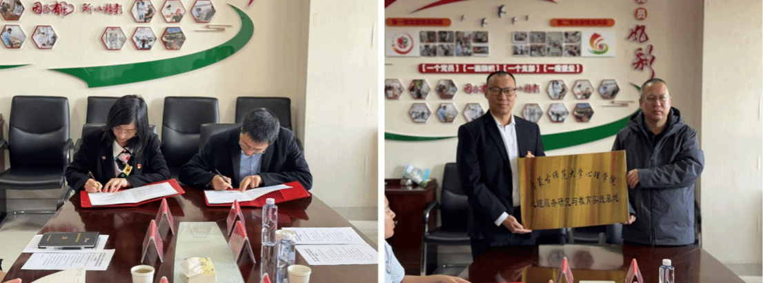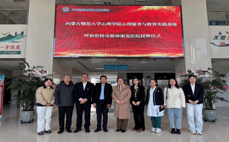 为推动心理健康教育教学与临床实践深度融合,优化教育与医疗资源共享,充分发挥医校协同育人优势在心理与精神卫生专业人才培养中的重要作用,11月19日,beat365正版唯一官网必一院长乌云特娜、副院长金童林、实验与创新创业实践中心主任王欣瑜、实习实践指导教师代表赵欣及研究生事务秘书赵媛一行,赴呼和浩特市精神康复医院签署实践基地合作协议。呼和浩特市精神康复医院副院长武利红、副院长佟斯日古郎及各科室代表出席签约授牌仪式。