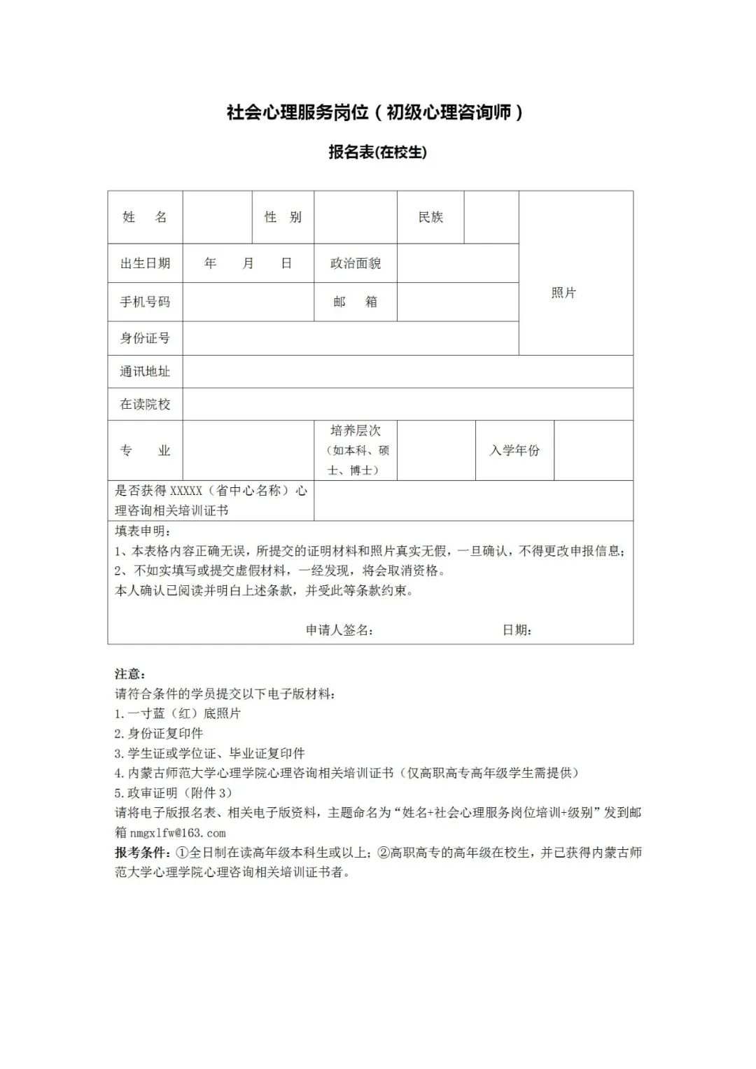 下载并填写报名表,并将报名表和相应资料一起发送到nmgxlfw@163.com邮箱,进行报名初审;初审过后,学员可通过以下方式进行报名:
